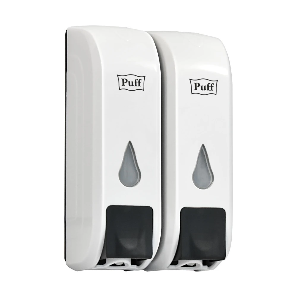 - Цвет: белый с черной кнопкой. Объем: 350 + 350 мл. Доза с одним касанием: 1 мл.