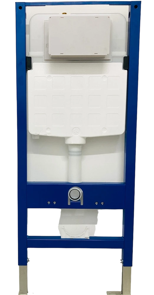 Система инсталляции для подвесных унитазов с клавишей, предназначена для оборудования санузлов. Несущая рама инсталляции монтируется в капитальную стену, зашивается гипсокартонными влагостойкими листами ГВЛ и др., с последующим декорированием кафельной плиткой. Смывная клавиша и подвесной унитаз выносятся на стену.