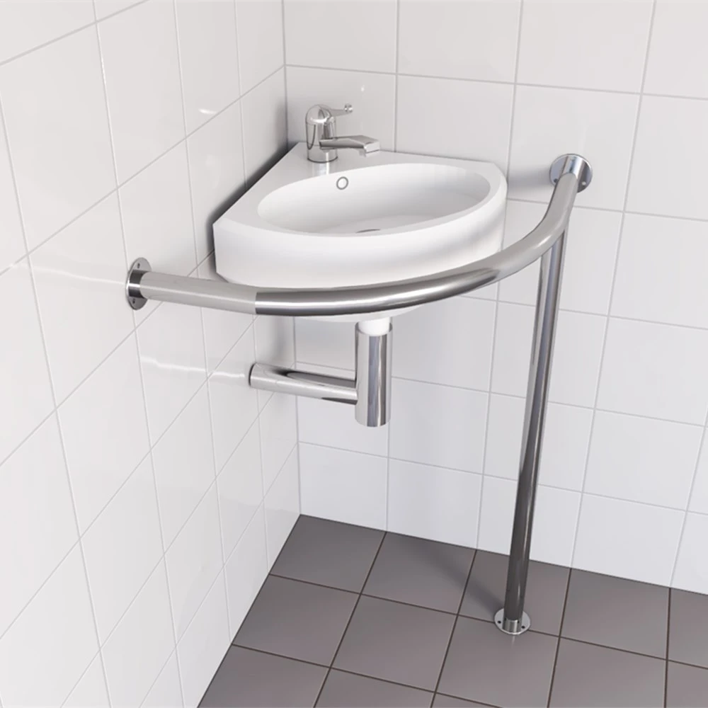 Комплект: Раковина угловая для инвалидов DS IF35 со смесителем DS3 и поручень полукруглый на стойке (арт. 2514, 5709, П4824-у)