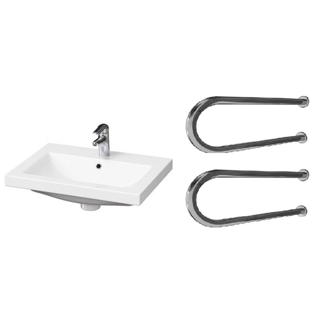Комплект: раковина Y5 с двумя двухопорными поручнями по ГОСТ (арт.2512, 8071-550)