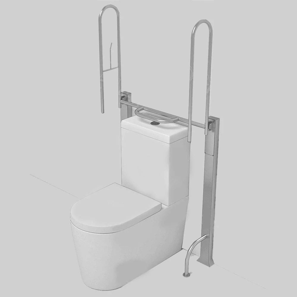 • Поручень к унитазу с опорой для спины и рук арт.4942. Данное опорное устройство представляет собой единый комплекс из трех откидных поручней: два откидных поручня для опоры рук (один с бумагодержателем) и один поручень - опора для спины. Данная модель устанавливается при адаптации санузла по программе """"Доступная среда"""" в соответствии с требованиями СП 59.13330.2020 п. 6.3.3: при адаптации для инвалидов санузлов, обязательным является установка устройств, обеспечивающих опору для спины при использовании унитаза.