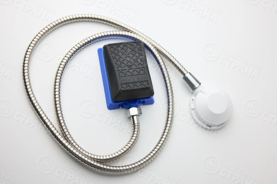 Пневмоприводный механизм устанавливается на кнопку смыва. Педаль связана с пневмоприводом гибким шлангом в металлической оплётке.