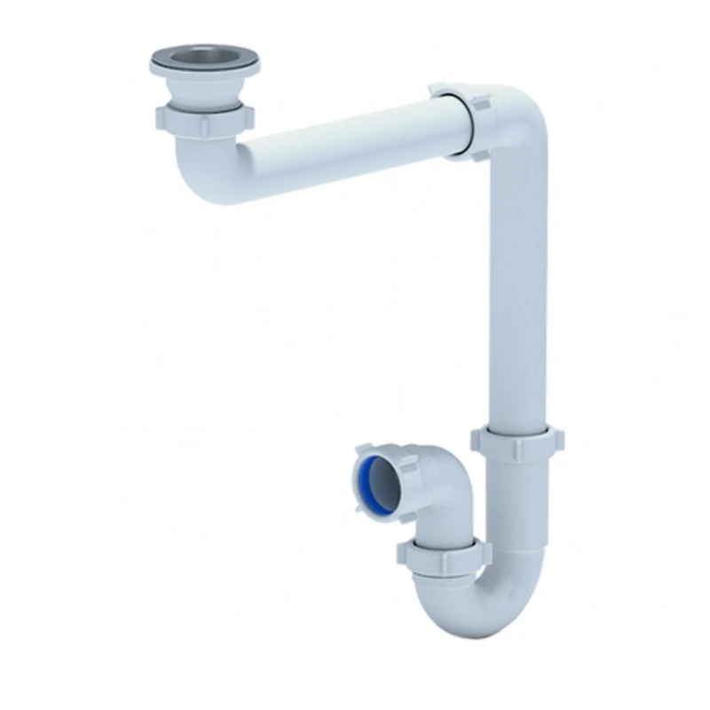 Длинный горизонтальный патрубок смещает колено от сливного отверстия к стене и освобождает пространство под раковиной, это позволяет подъезжать на инвалидной коляске вплотную к умывальнику. Таким образом, смещённый сифон будет хорошим решением при оборудовании санузла для маломобильных граждан.