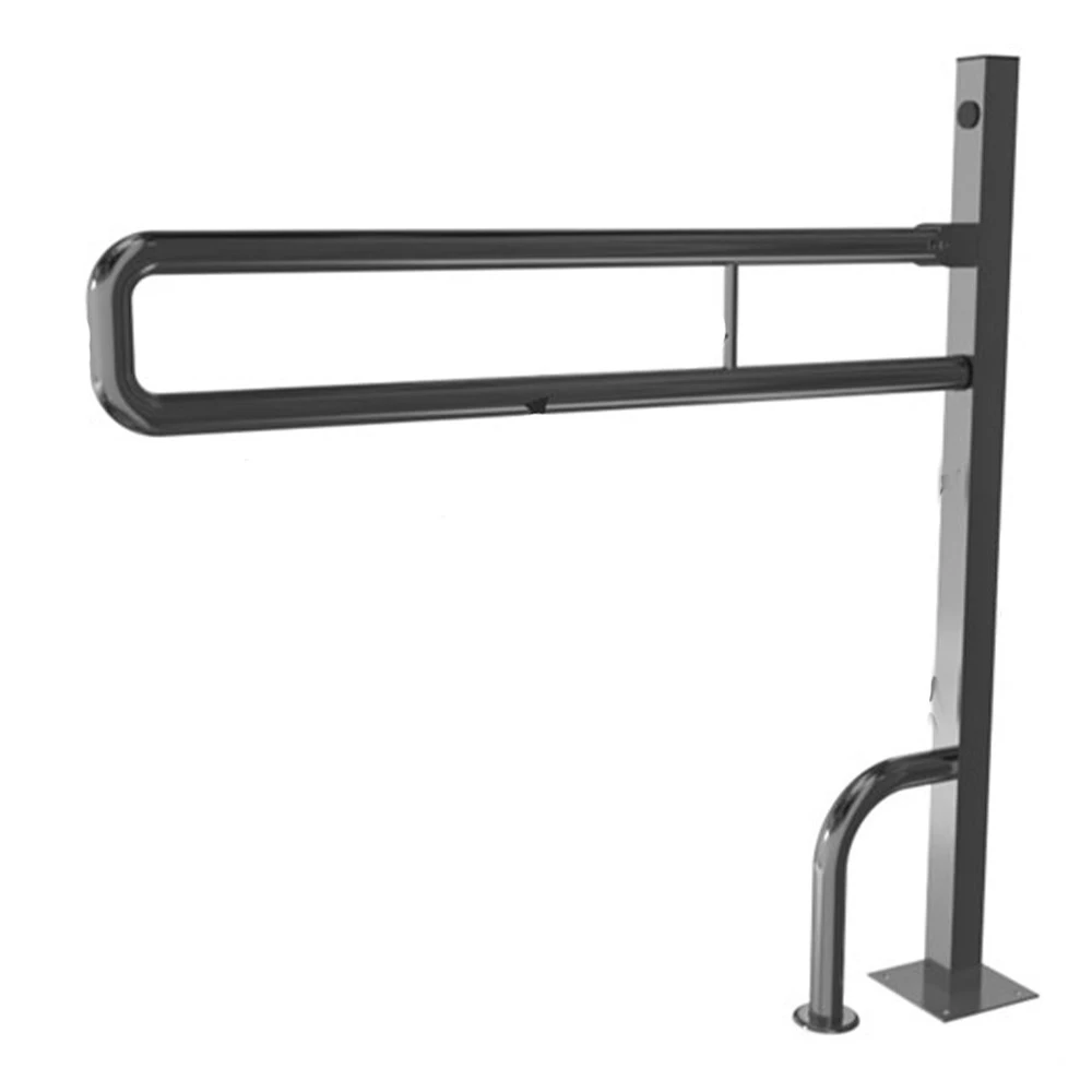 - Откидной механизм: позволяет поднять поручень наверх, обеспечивая возможность пересадки с инвалидной коляски и освобождая место. Продуманная конструкция откидного механизма предотвращает люфт в месте крепления и снижает риск расшатывания поручня с течением времени.
