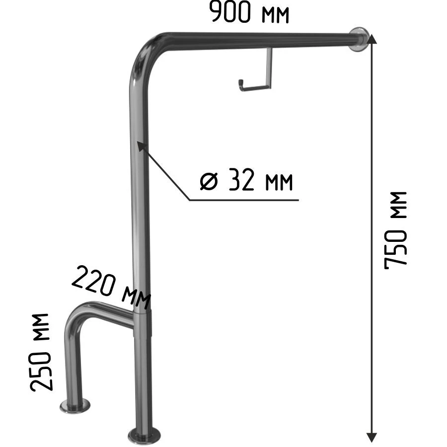 Общий размер поручня (мм)900х250х750