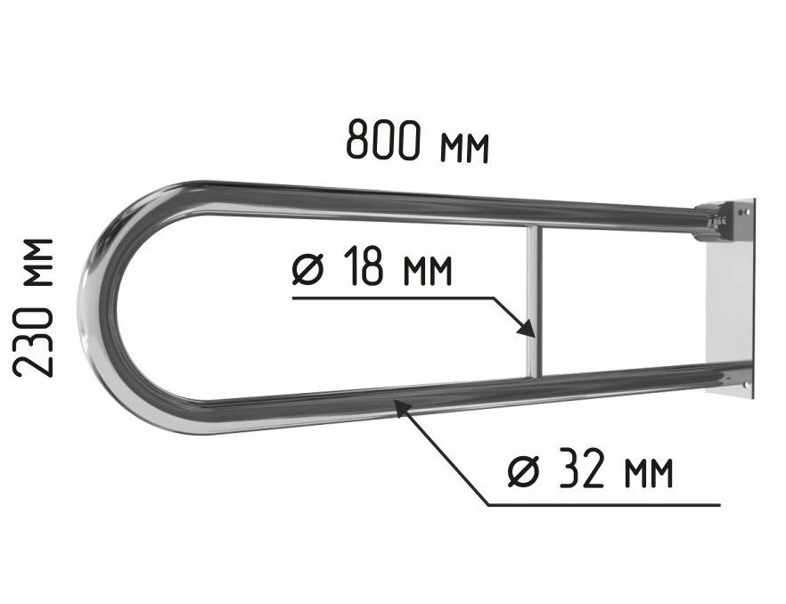 Поручень настенный откидной без бумагодержателя 800х230 мм