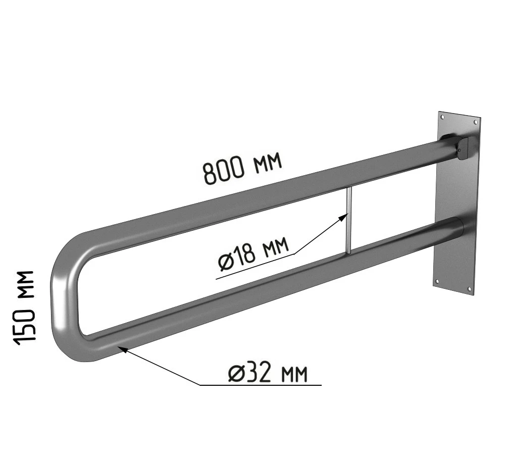 Поручень для туалета настенный откидной без бумагодержателя по ГОСТ 800x150 мм, диаметр 32