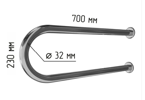Поручень для унитаза двухопорный неоткидной без бумагодержателя по ГОСТ 700х230мм, диаметр 32 (для детского унитаза арт. 2053А)