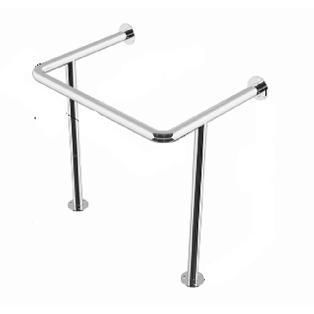 Поручень на стойках для раковины 550х730х750мм, оснащен четырьмя опорами, 2 из которых размещены на полу, а остальные прикреплены к стенке.