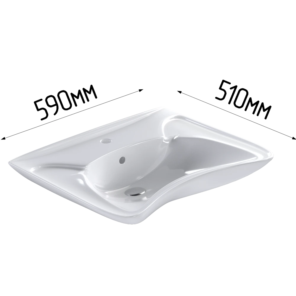 Настенная хирургическая раковина с вогнутым передним краем, с бортиком, с отверстием для смесителя, с переливным отверстием, материал: керамика, цвет: белый, крепёж не входит в комплект.