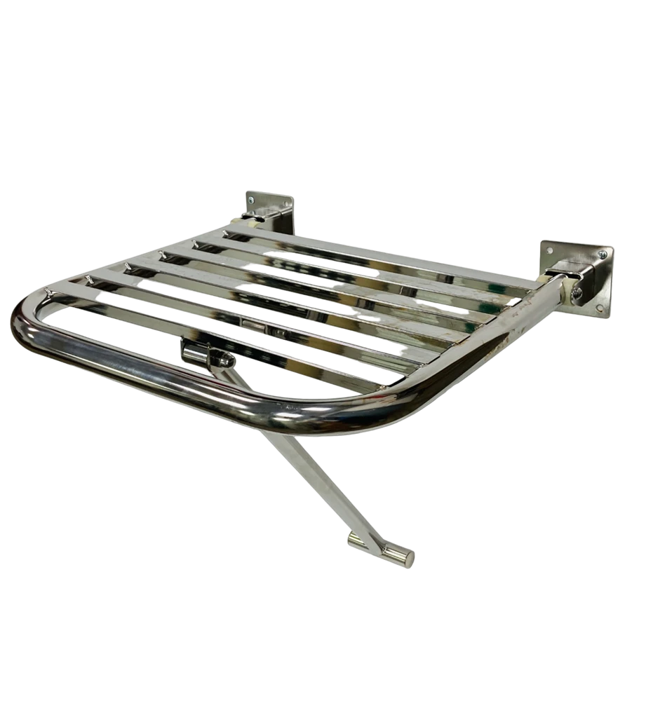 Сиденье откидное для душа из нержавеющей стали с упором в пол 50х50 см
