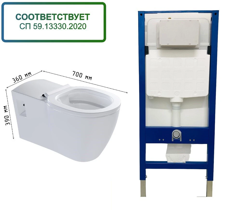 Унитаз подвесной с инсталляцией для инвалидов соответствующий нормам DSTRANA