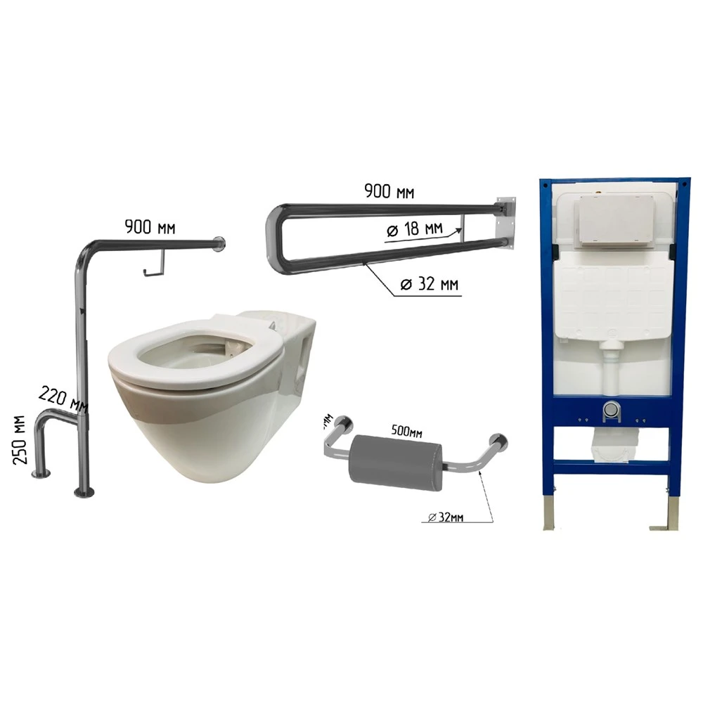 Унитаз подвесной соответствующий нормам DSTRANA с инсталляцией, поручнями и опорой под спину по ГОСТ